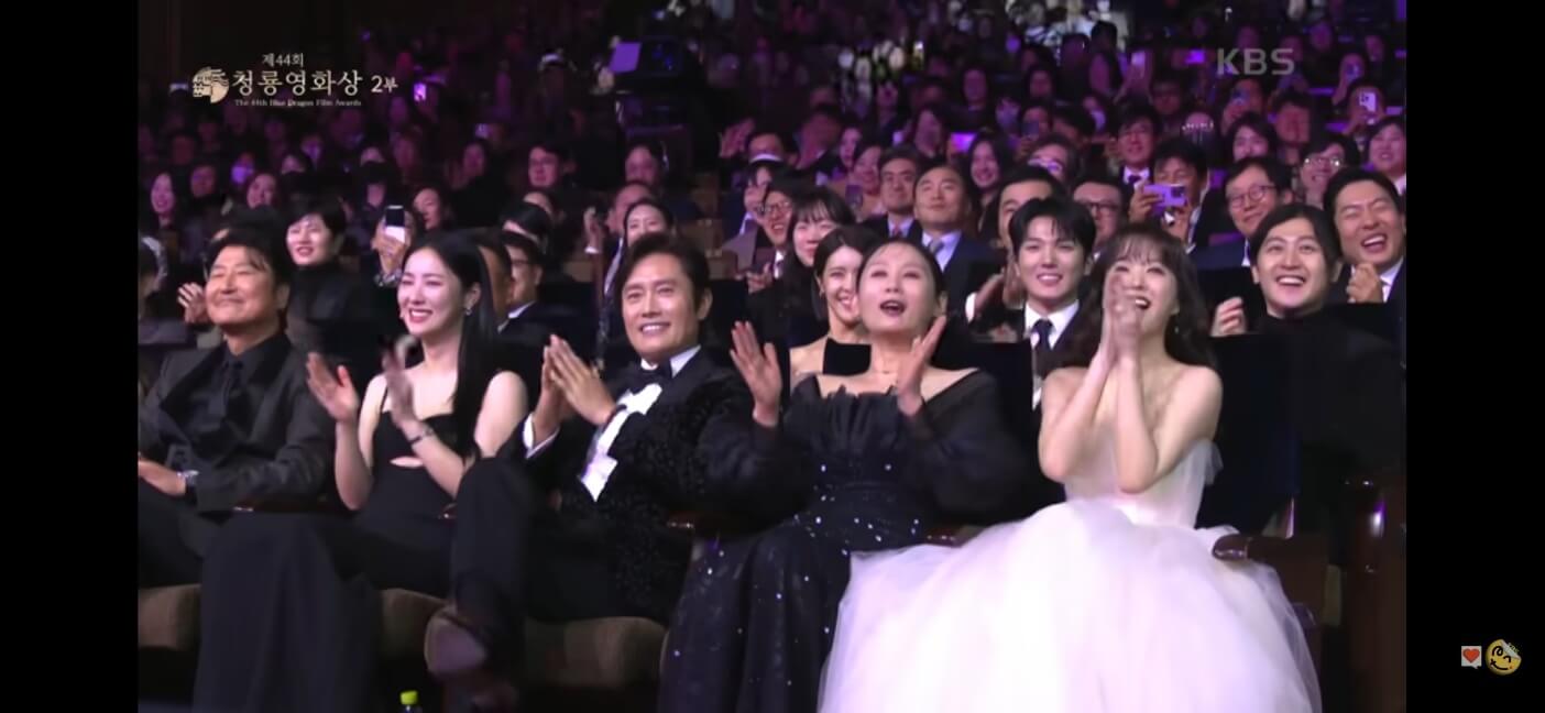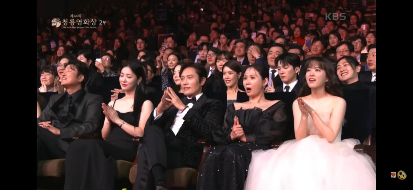 청룡영화상 축하공연 박진영의 무대가 시작되자 많은 배우들과 관중들의 표정이 나오는데요.